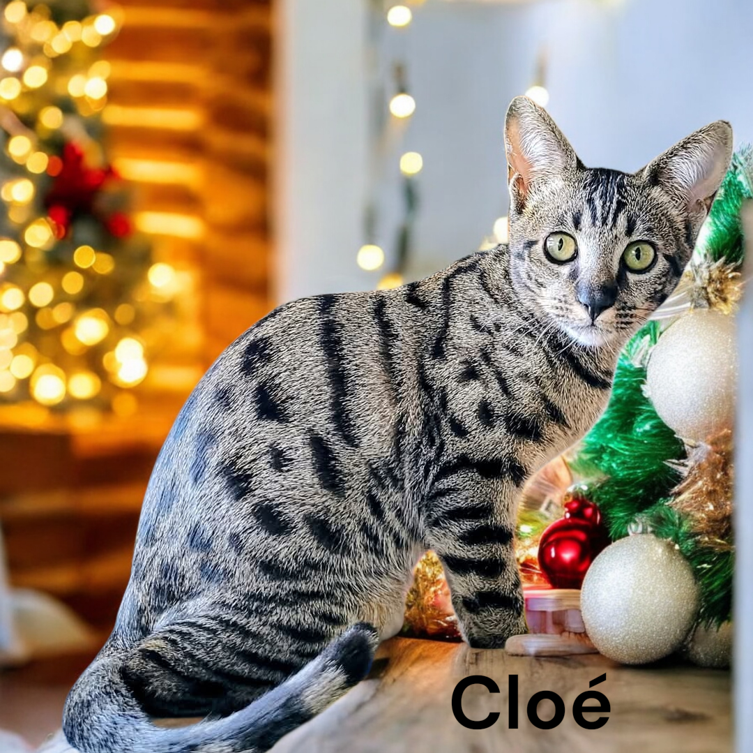 Cloé, petite Savannah F5 au regard vif, explore le monde avec l’âme d’une aventurière.